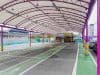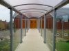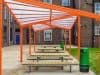This bright coloured Free-standing, polycarbonate roof, Ascot Barrel-vault canopy is 5.85m wide x 25m long has given an outdoor play area with access direct from the classrooms. The canopy provides both rain and sun protection which has given both children an teachers all year versatility in its use.