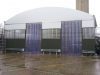 We use a two part glazing bar on our canopies with rubber gasket or cushions to attach the roof polycarbonate sheets as this allows for the expansion of the sheets as the weather heats up or cools down. The rubber gaskets as well as creating a watertight seal greatly reduce noise levels as the sheets expand and contract. We do not screw sheets directly to the framework as this can lead to the roofing sheets buckling and potentially causing leaks due to the possibility of screw heads popping off. In addition to this we never lap one sheet over the other as this can result in an algae build-up resulting in unsightly discoloured patches in the roof.